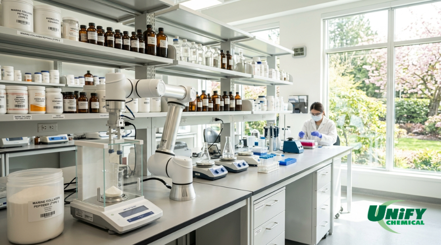 Unify Chemical เป็นผู้นำเข้า จัดจำหน่ายวัตถุดิบ และสารผสมอาหารที่หลากหลายจากผู้ผลิตชั้นนำทั่วโลก ที่ดำเนินธุรกิจมานานกว่า 20 ปี ความโดดเด่นของ Unify อยู่ที่กระบวนการคัดเลือกผู้ผลิตจากทั่วโลกอย่างพิถีพิถัน โดยเน้นที่เทคโนโลยีการผลิตที่ทันสมัย และความโปร่งใสในแหล่งที่มาของวัตถุดิบ การเลือกใช้คอลลาเจนจากปลา Pacific True Cod จากแหล่งน้ำที่เย็น และสะอาดถือเป็นเครื่องยืนยันถึงคุณภาพระดับพรีเมียม
